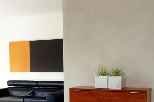 Mit Pigmentfarben gestrichene Wände verleihen dem Raum eine einzigartige Atmosphäre.