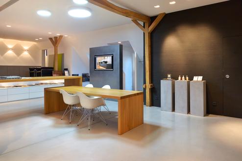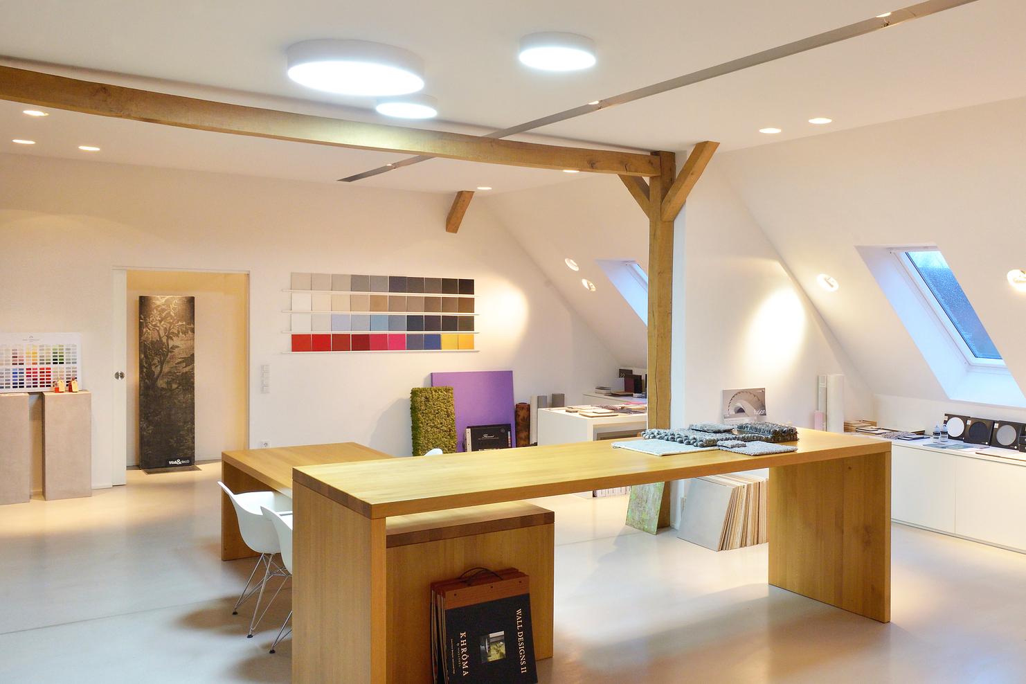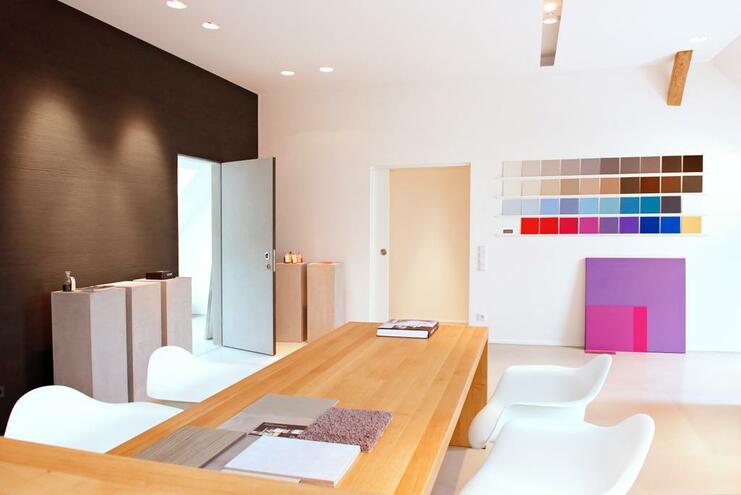 In unseren ländlich gelegenen „Ideenräumen“ finden Sie unsere Mustersammlung, Projektbeispiele und großflächige Oberflächenpräsentationen sowie eine wunderschöne Teppich- und Bodenausstellung. Freuen Sie sich auf außergewöhnliche Farbwelten, faszinierende Strukturen und innovative Oberflächen für Ihr individuelles Raumkonzept.