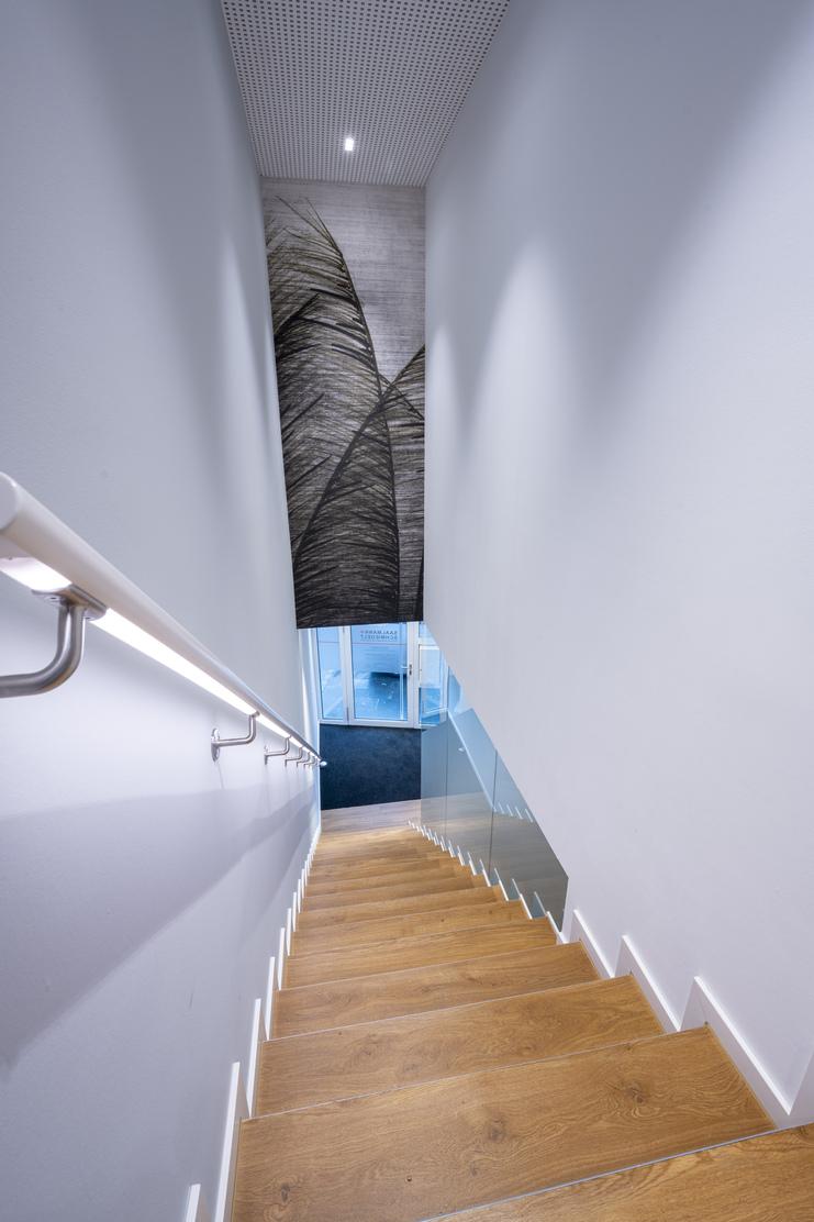 Freundlich einladende Wandgestaltung im Foyer. Herzlich Willkommen.