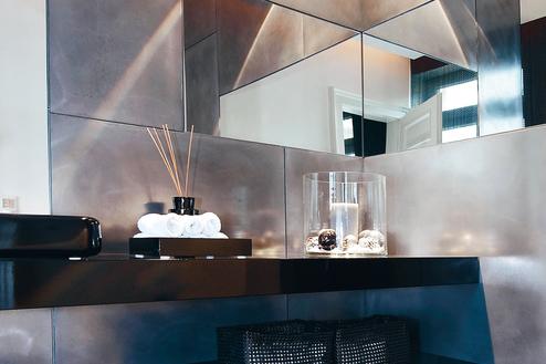 Die einzigartige Metall Optik entsteht durch die Vereinigung verflüssigter Edelmetalle und pompejanischer Putze. Diese Kombinationen eröffnen eine völlig neue Welt an Gestaltungsmöglichkeiten. Im raffinierten Materialmix entstehen verschiedene Metallfarben-Nuancen, edle Strukturen und wunderschöne Effekte, die Wände in Metall Design als wahres Kunstwerk erscheinen lassen. Damit werden bisherige Grenzen in der Wandgestaltung überschritten und ein aufregend sinnliches Erlebnis für Augen und Hände entsteht, das man in dieser unvergleichlichen Weise noch nie gesehen oder gefühlt hat.