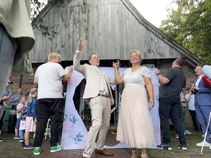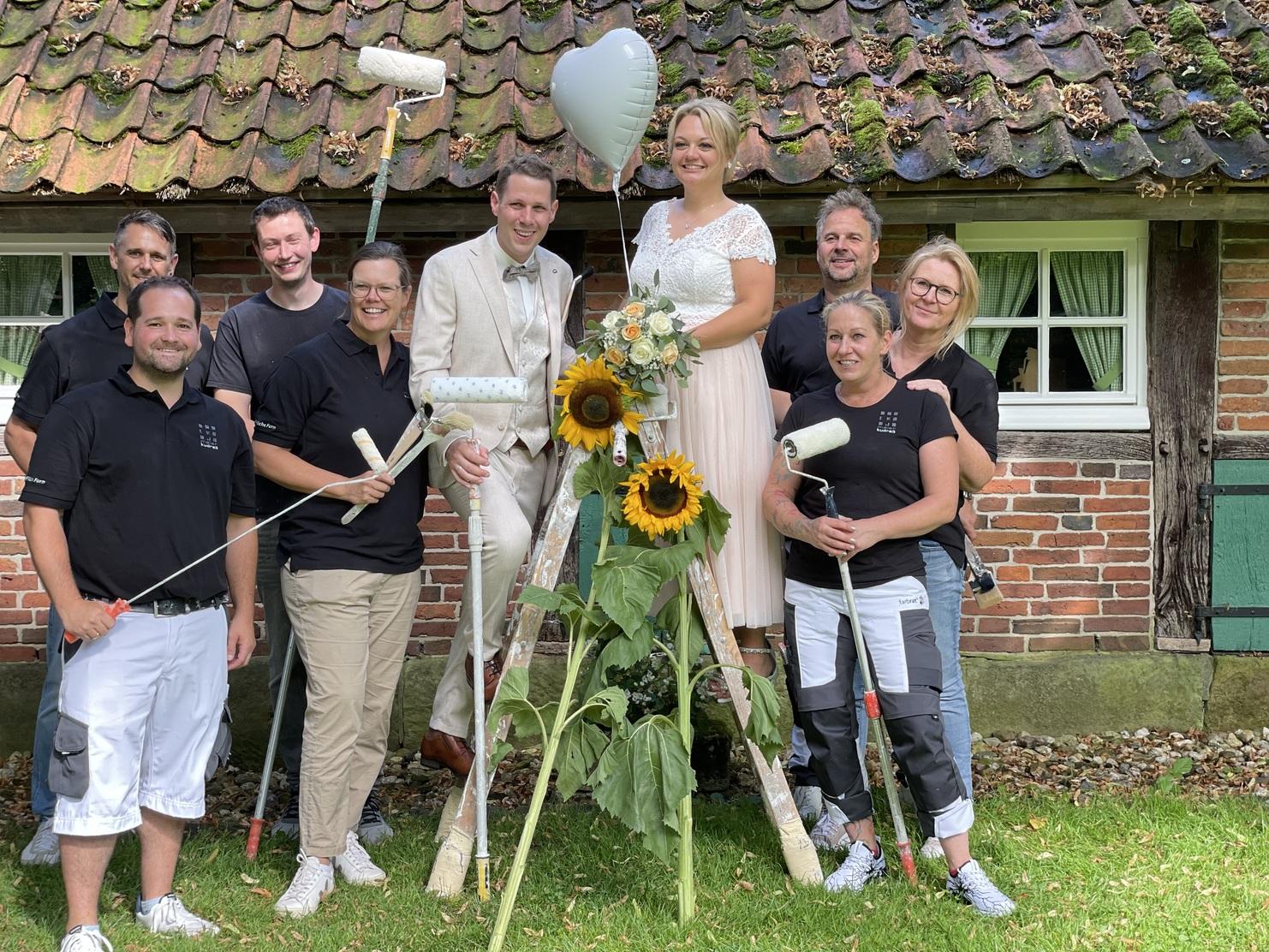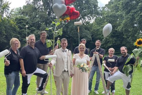 Wenn wir zu einem der schönsten Ereignisse des Lebens von unserem Teamkollegen Udo geladen werden, lassen wir uns nicht lange bitten. Das gesamte Team stand pünktlich Spalier und ließ das Brautpaar hoch leben.